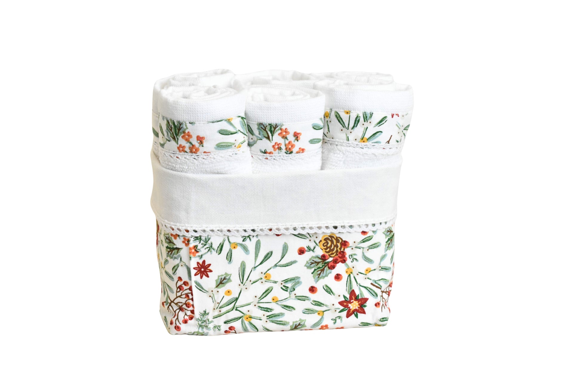 Flora - White ( Cordinated Basket of 6 Face Towels )